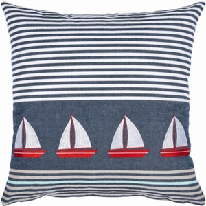 pad Kissenhülle Marina 50 x 50 cm beige Baumwolle Stickerei Boote